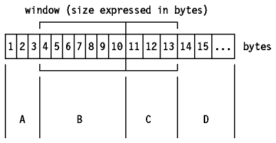 - Como TCP proporciona una conexión con un flujo de bytes, los números de secuencia se asignan a cada byte del canal. TCP divide el flujo de bytes en segmentos. El principio de la ventana se aplica a nivel de bytes; es decir, los segmentos enviados y los ACKs recibidos llevarán números de secuencia de forma que el tamaño de la ventana se exprese con un número de bytes, en vez del de paquetes.