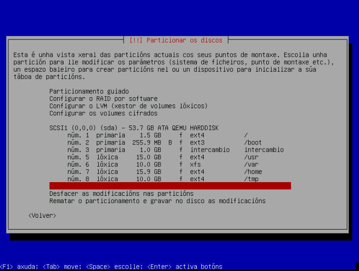 - /home/ - disco de los usuarios, tamaño en función de las necesidades del usuario